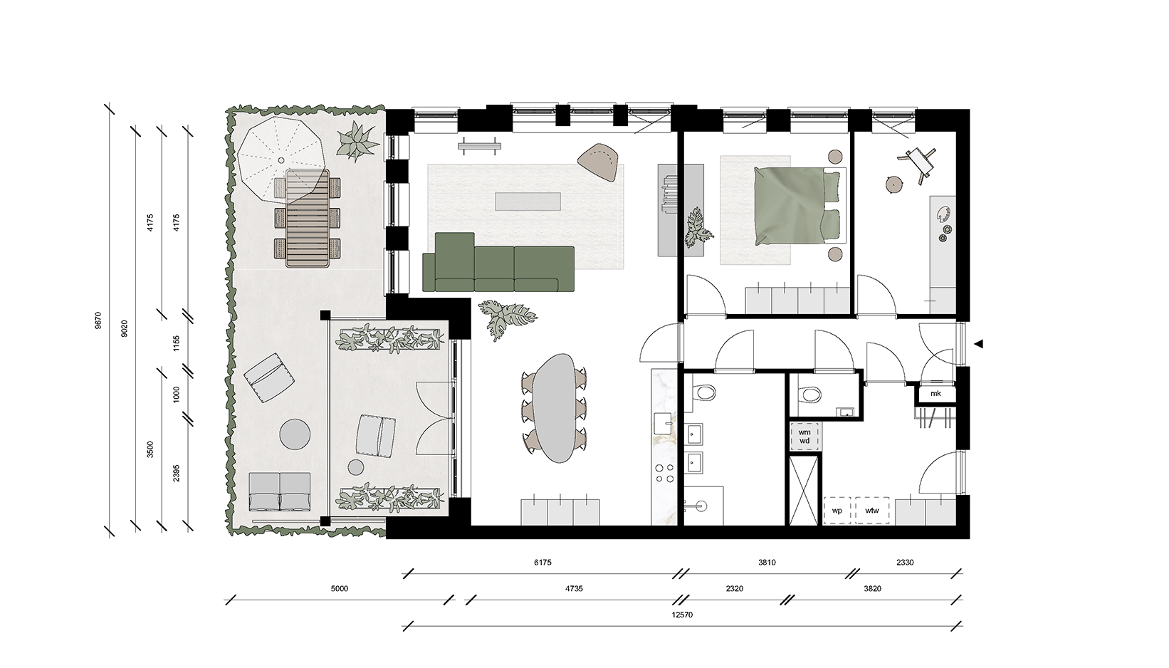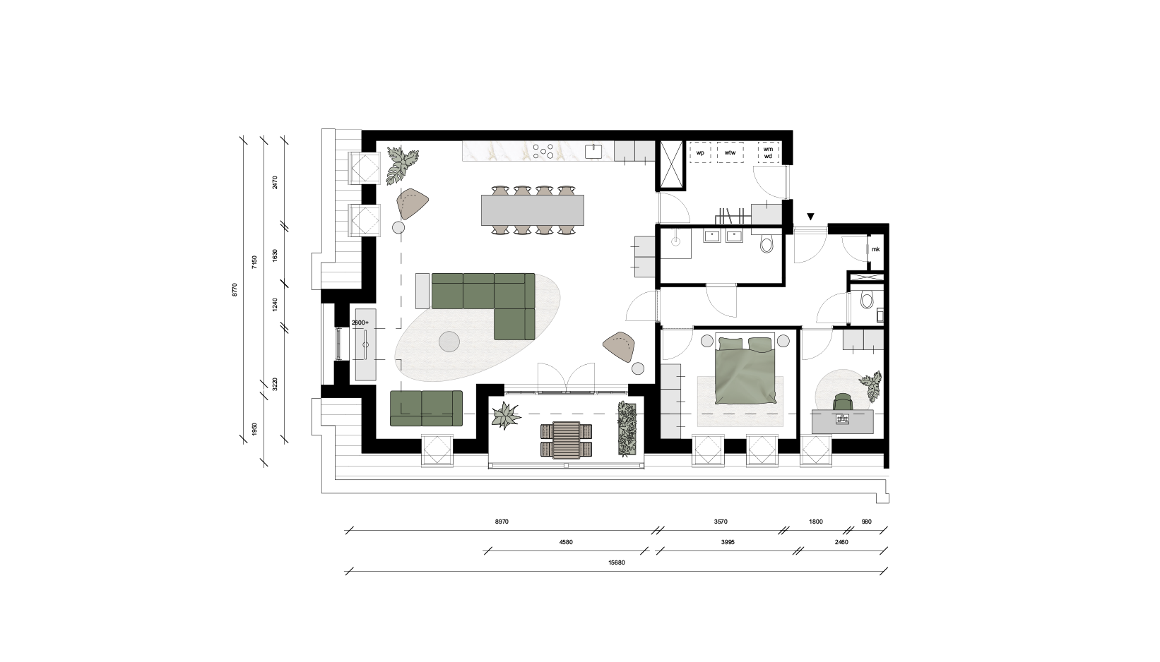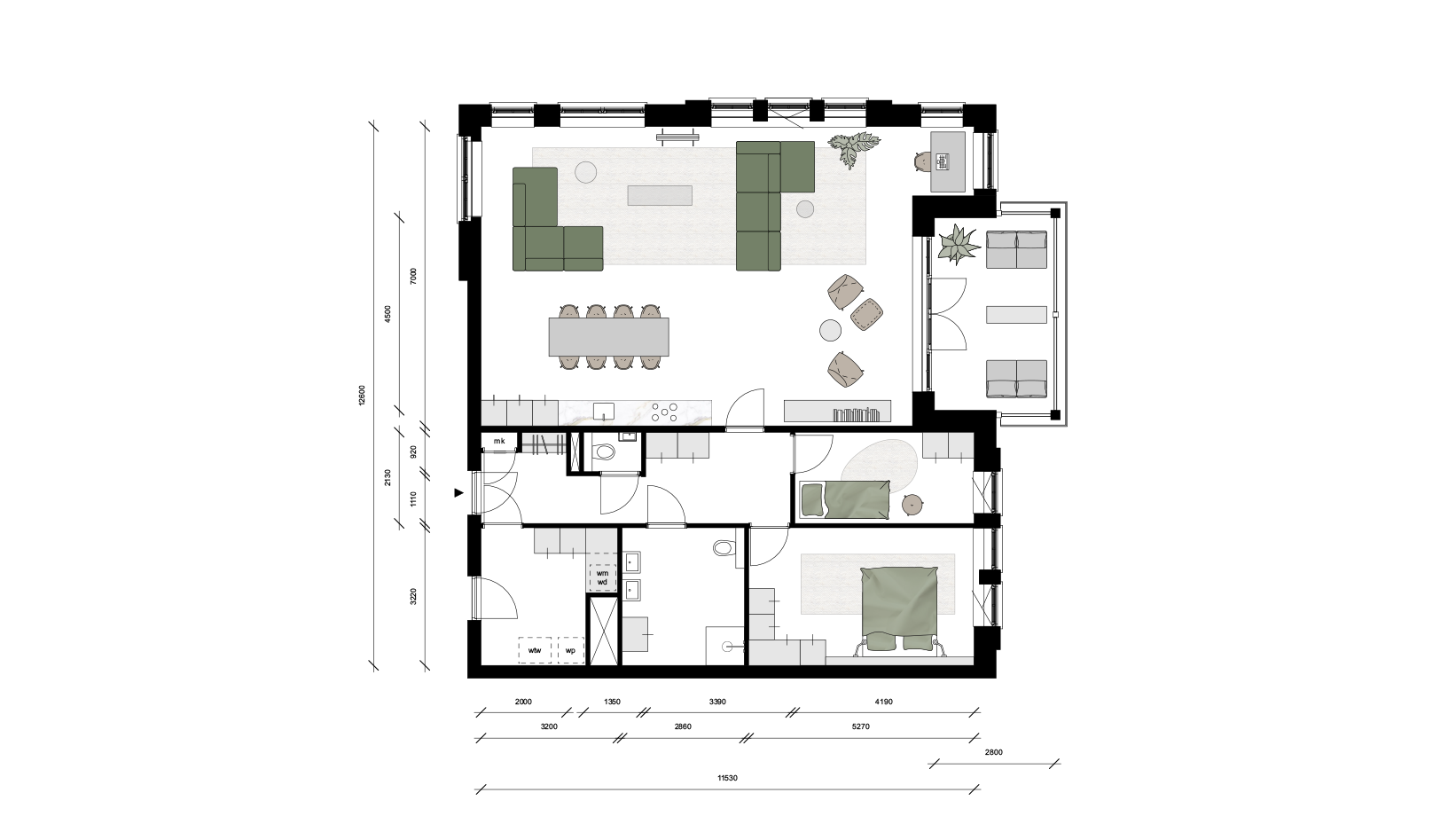 - voorzien van een warmte-terugwin-unit voor ventilatie, warmtapwater, vloerverwarming en vloerkoeling.